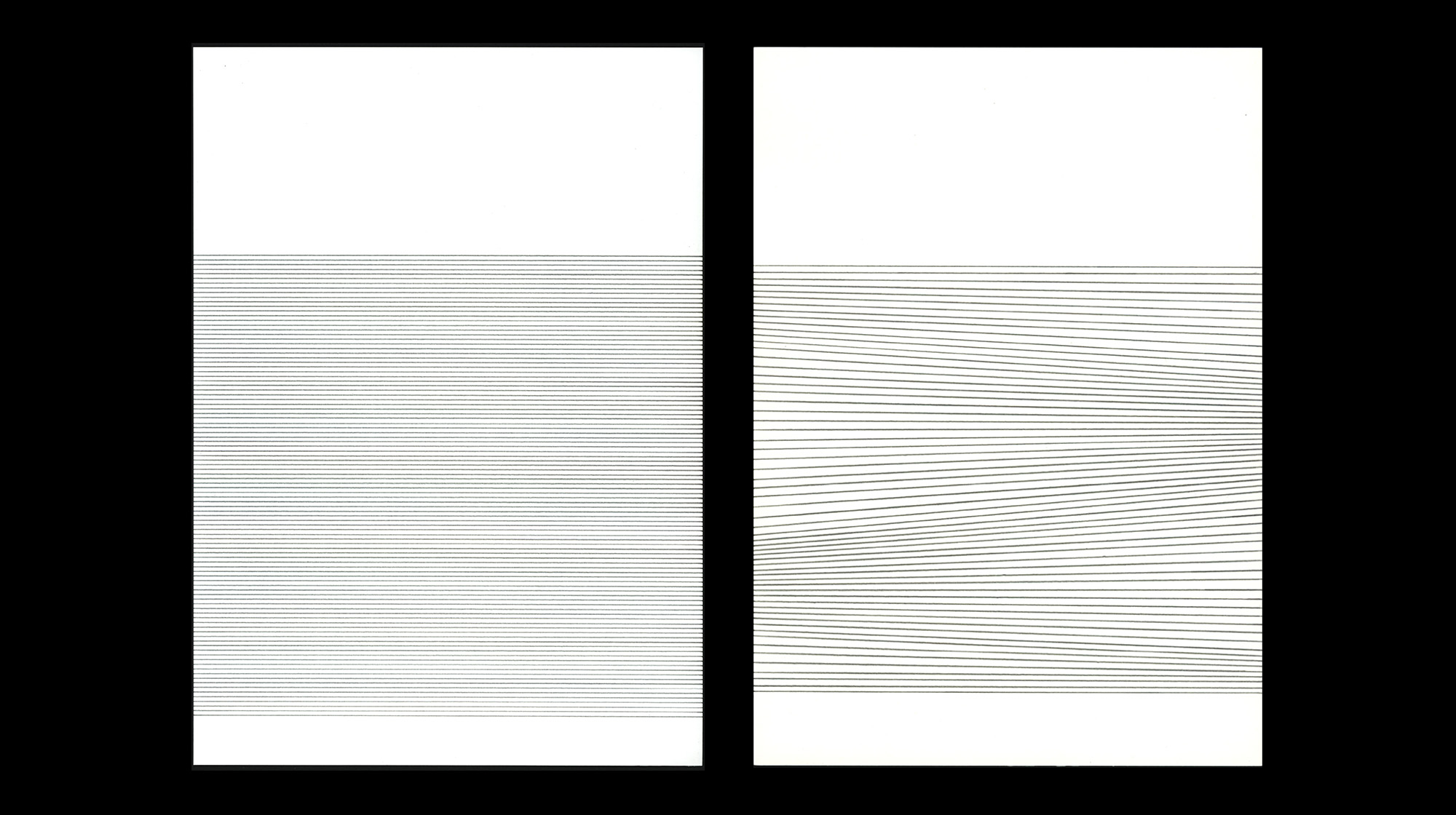 An der Horizontlinie ist ein klassisches, malerisches Phänomen zu beobachten – das Sfumato, das leichte Schwingen einer Linie, die von zwei aneinanderstoßenden Malflächen gebildet wird, eine leichte Unschärfe, die durch ihre Präzision atmosphärische Raumtiefe suggeriert. Das Sfumato verräumlicht die sich an ihrer Grenze minimal überlappenden Flächen.
