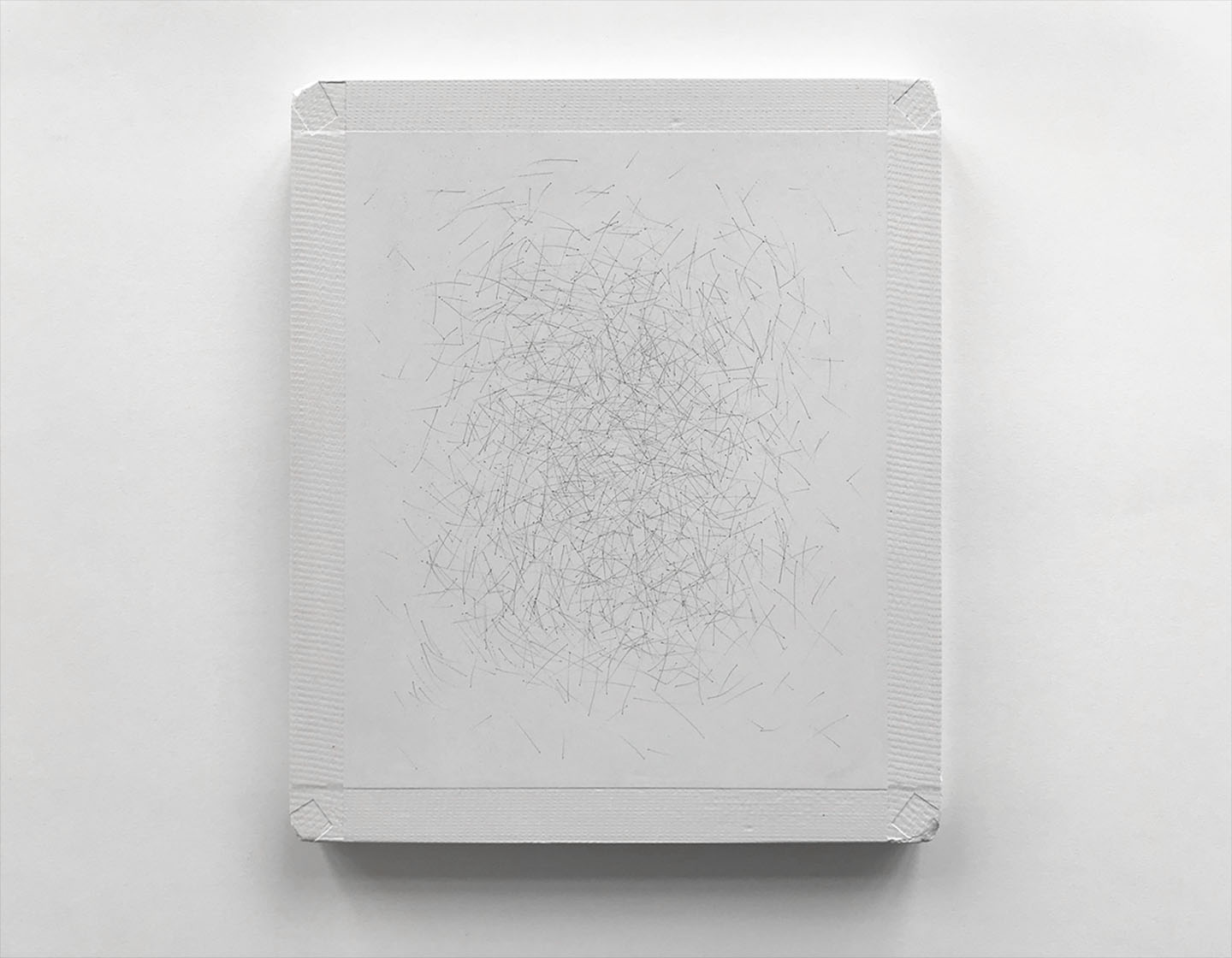 Die Serie der Arbeiten, die auf diese Ouvertüre folgt, sind Bildobjekte, die den Raum ganz konkret für sich reklamieren. Haben ihn die vorangehenden Tafelbilder noch durch Extension und Respiration von Farbe negiert oder evoziert, wird er nun durch Faltung, Bündelung und Schichtung des farbtragenden Materials ganz konkret Element der Arbeiten. Auch wenn diese Prozeduren die formbuchstabierenden Verfahren der Minimal Art in Anschlag bringen, bleibt Anette Haas keineswegs dabei stehen. Ihre Arbeiten beherrscht ein wunderbares Paradox. Sie sind objektiv und subjektiv zugleich. Sie sind Mathematik und Erzählung. Wenn man sie ent-faltet – ganz buchstäblich zurückverfolgt bis zu dem Punkt ihrer Entstehung – stellt man fest, dass sie formal sehr streng gearbeitet sind, und doch ist das Ergebnis von ornamentaler Leichtigkeit. Überall begegnet uns in den Bildobjekten eine Art schwebender Ambivalenz. So entpuppt sich die vermeintlich industrielle Textur als das Ergebnis einer ganz persönlichen Produktionsalchemie. Anette Haas spannt Nessel über einen Rahmen, trägt wiederholt lasierend Acrylfarbe auf und versiegelt das Ganze anschließend mit flüssigem Wachs. So erreicht sie den starren und zugleich flexiblen Materialstatus ihrer Arbeiten.
