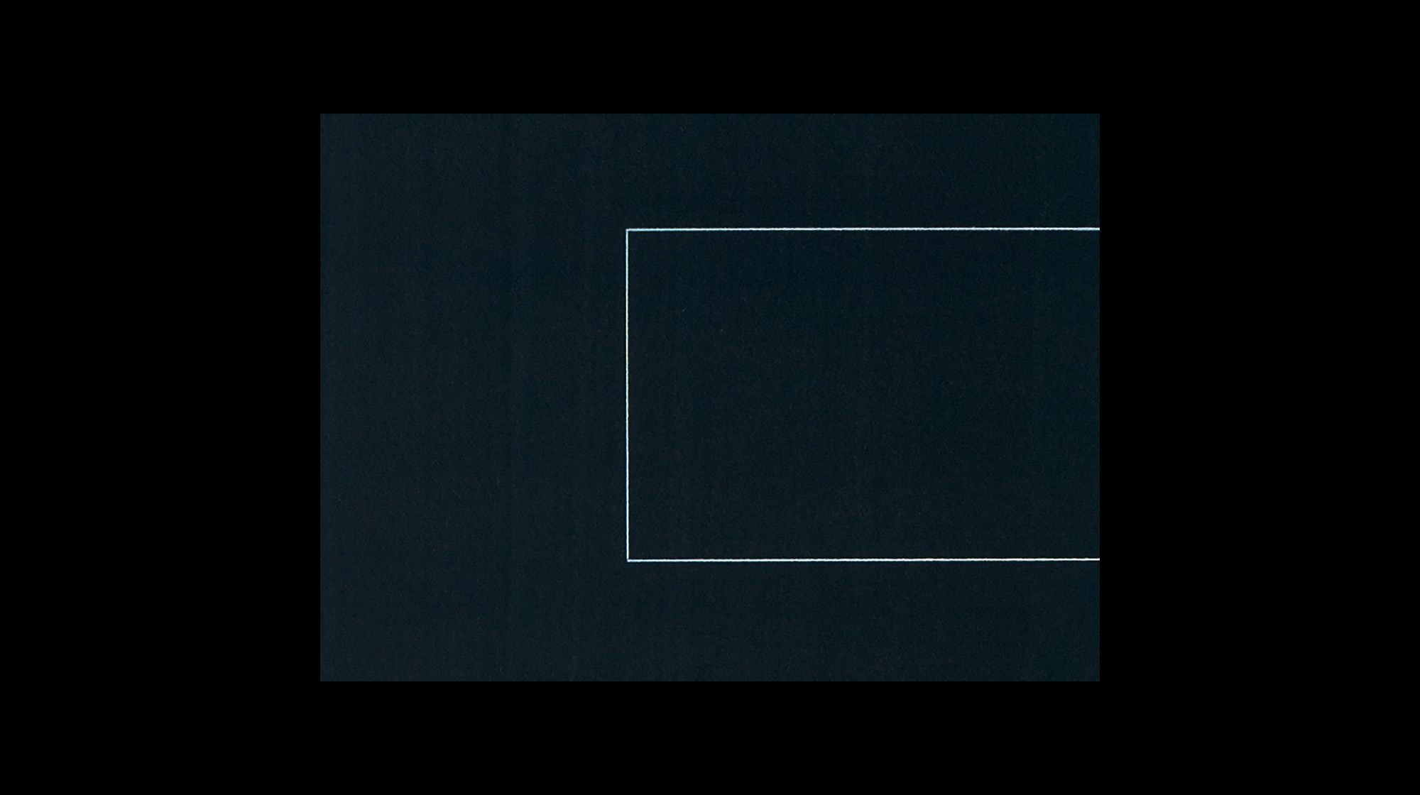An der Horizontlinie ist ein klassisches, malerisches Phänomen zu beobachten – das Sfumato, das leichte Schwingen einer Linie, die von zwei aneinanderstoßenden Malflächen gebildet wird, eine leichte Unschärfe, die durch ihre Präzision atmosphärische Raumtiefe suggeriert. Das Sfumato verräumlicht die sich an ihrer Grenze minimal überlappenden Flächen.