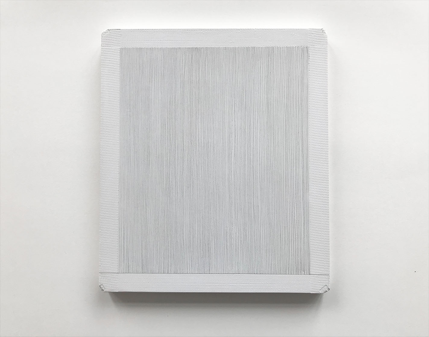 Die Serie der Arbeiten, die auf diese Ouvertüre folgt, sind Bildobjekte, die den Raum ganz konkret für sich reklamieren. Haben ihn die vorangehenden Tafelbilder noch durch Extension und Respiration von Farbe negiert oder evoziert, wird er nun durch Faltung, Bündelung und Schichtung des farbtragenden Materials ganz konkret Element der Arbeiten. Auch wenn diese Prozeduren die formbuchstabierenden Verfahren der Minimal Art in Anschlag bringen, bleibt Anette Haas keineswegs dabei stehen. Ihre Arbeiten beherrscht ein wunderbares Paradox. Sie sind objektiv und subjektiv zugleich. Sie sind Mathematik und Erzählung. Wenn man sie ent-faltet – ganz buchstäblich zurückverfolgt bis zu dem Punkt ihrer Entstehung – stellt man fest, dass sie formal sehr streng gearbeitet sind, und doch ist das Ergebnis von ornamentaler Leichtigkeit. Überall begegnet uns in den Bildobjekten eine Art schwebender Ambivalenz. So entpuppt sich die vermeintlich industrielle Textur als das Ergebnis einer ganz persönlichen Produktionsalchemie. Anette Haas spannt Nessel über einen Rahmen, trägt wiederholt lasierend Acrylfarbe auf und versiegelt das Ganze anschließend mit flüssigem Wachs. So erreicht sie den starren und zugleich flexiblen Materialstatus ihrer Arbeiten.
